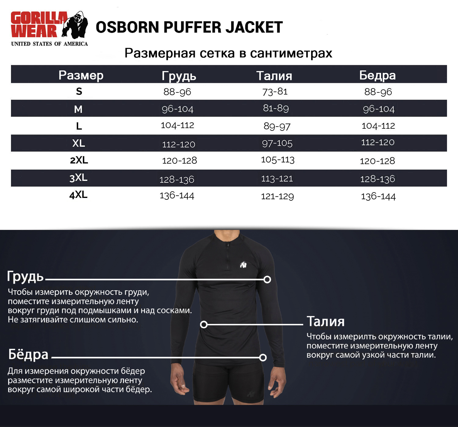 Начиная с 80-х годов Gorilla Wear - легендарный всемирно известный американский бренд, который производит одежду для бодибилдинга и фитнеса «для мотивированных». Вся одежда в стиле GORILLA WEAR специально предназначена для требовательных спортсменов во всем мире. Эта одежда уникальна, она идеально садится по фигуре, она не подведет тебя. Она даст тебе возможность выглядеть индивидуально и спортивно, именно так, как ты хочешь.