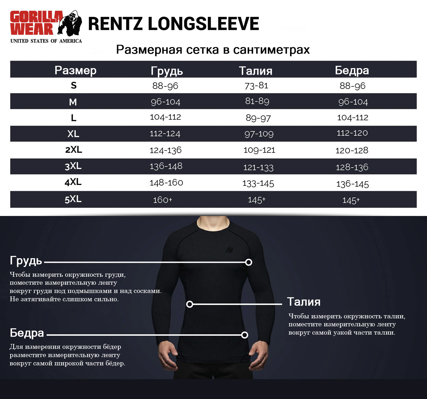 Начиная с 80-х годов Gorilla Wear - легендарный всемирно известный американский бренд, который производит одежду для бодибилдинга и фитнеса «для мотивированных». Вся одежда в стиле GORILLA WEAR специально предназначена для требовательных спортсменов во всем мире. Эта одежда уникальна, она идеально садится по фигуре, она не подведет тебя. Она даст тебе возможность выглядеть индивидуально и спортивно, именно так, как ты хочешь.